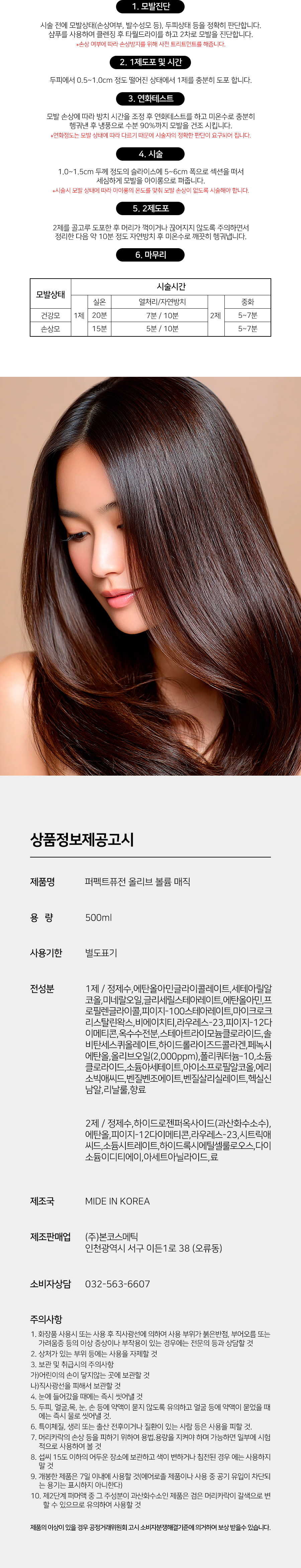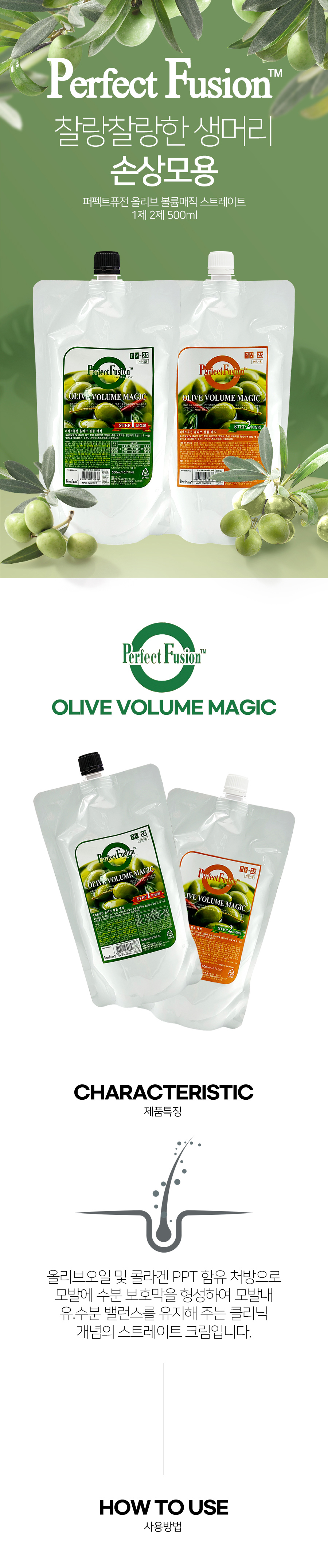 [1133] 본코스메틱 퍼펙트퓨전 올리브 볼륨 매직스트레이트(손상모) 1,2제 각 500g (2제 액상)
