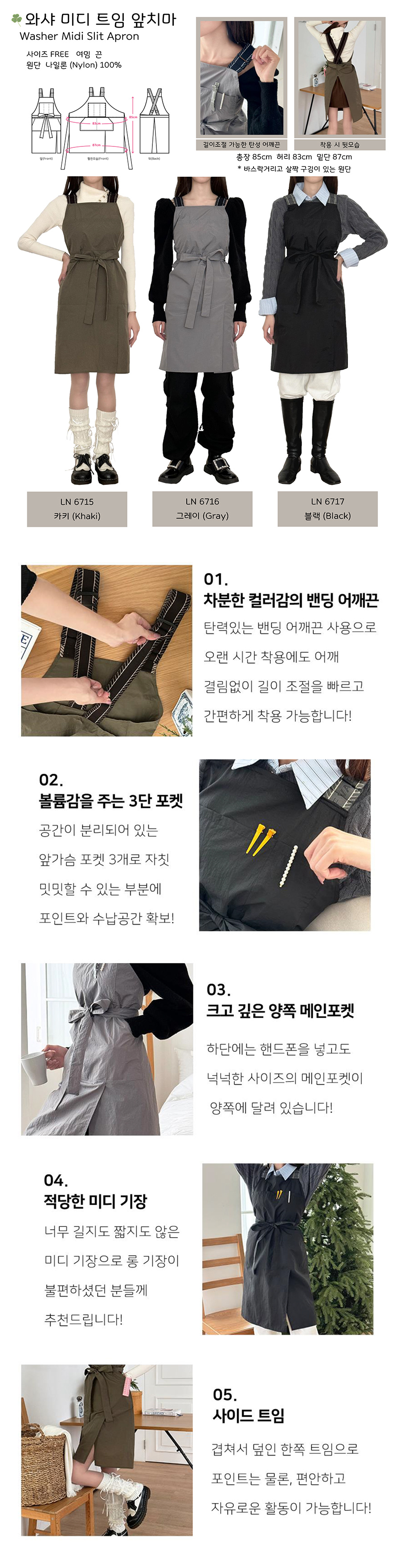 [9489] [라인] 와샤 미디 트임 앞치마