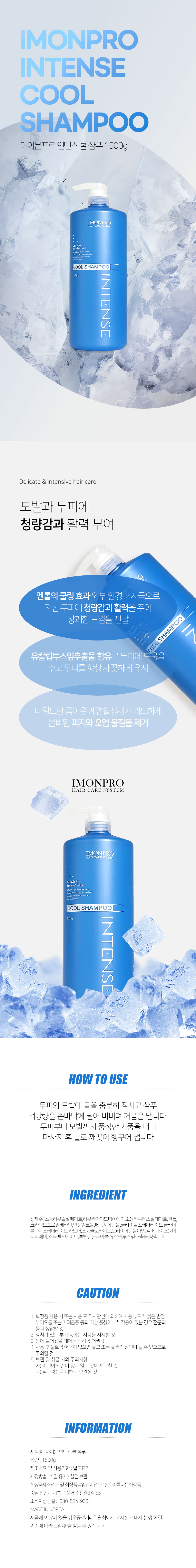 [4287] 아름다운화장품 아이몬프로 인텐스 쿨 샴푸 1500g 두피 마사지 탁월 대용량 쿨샴푸