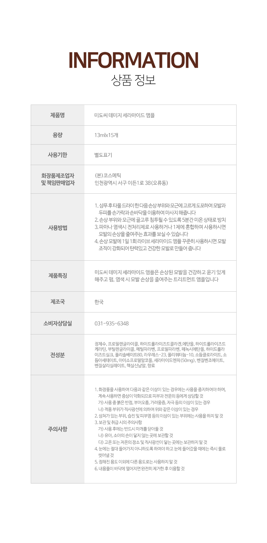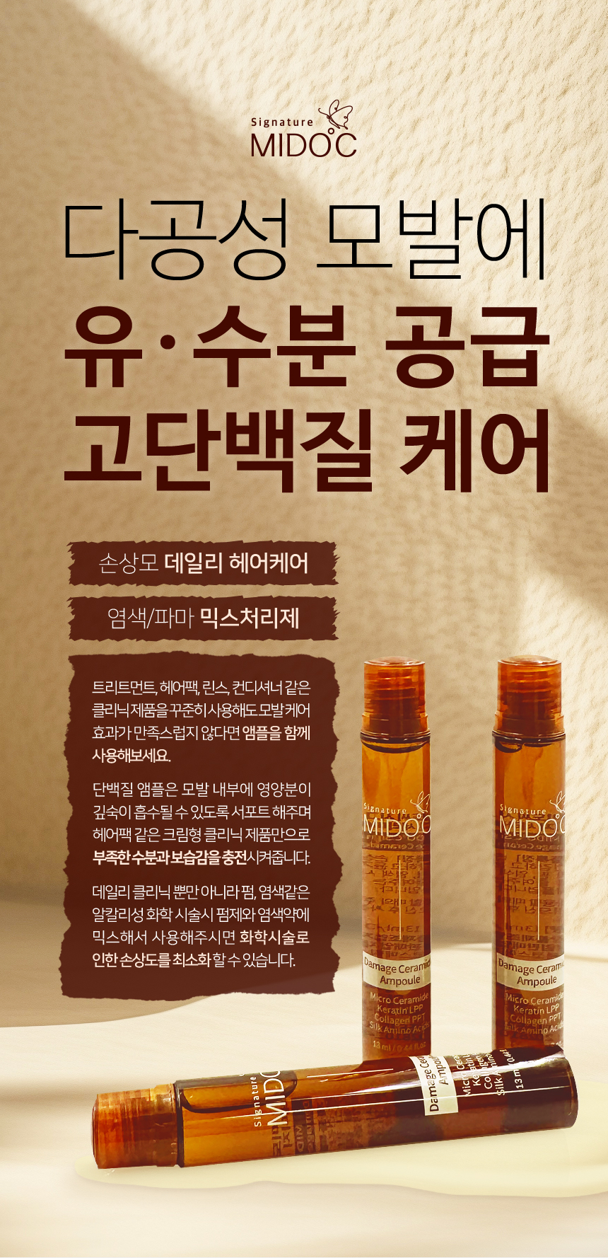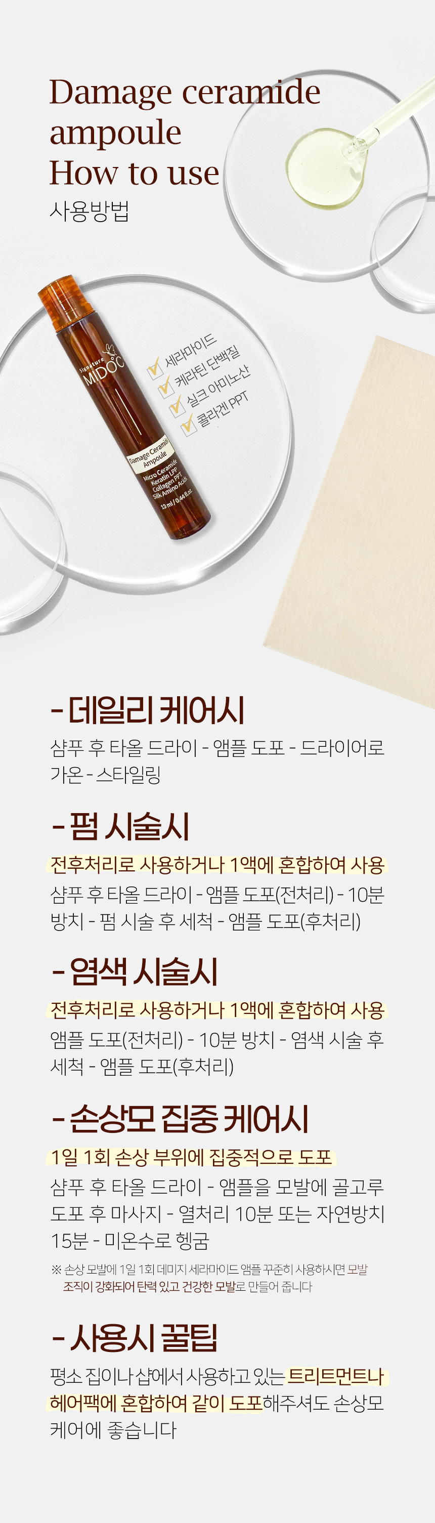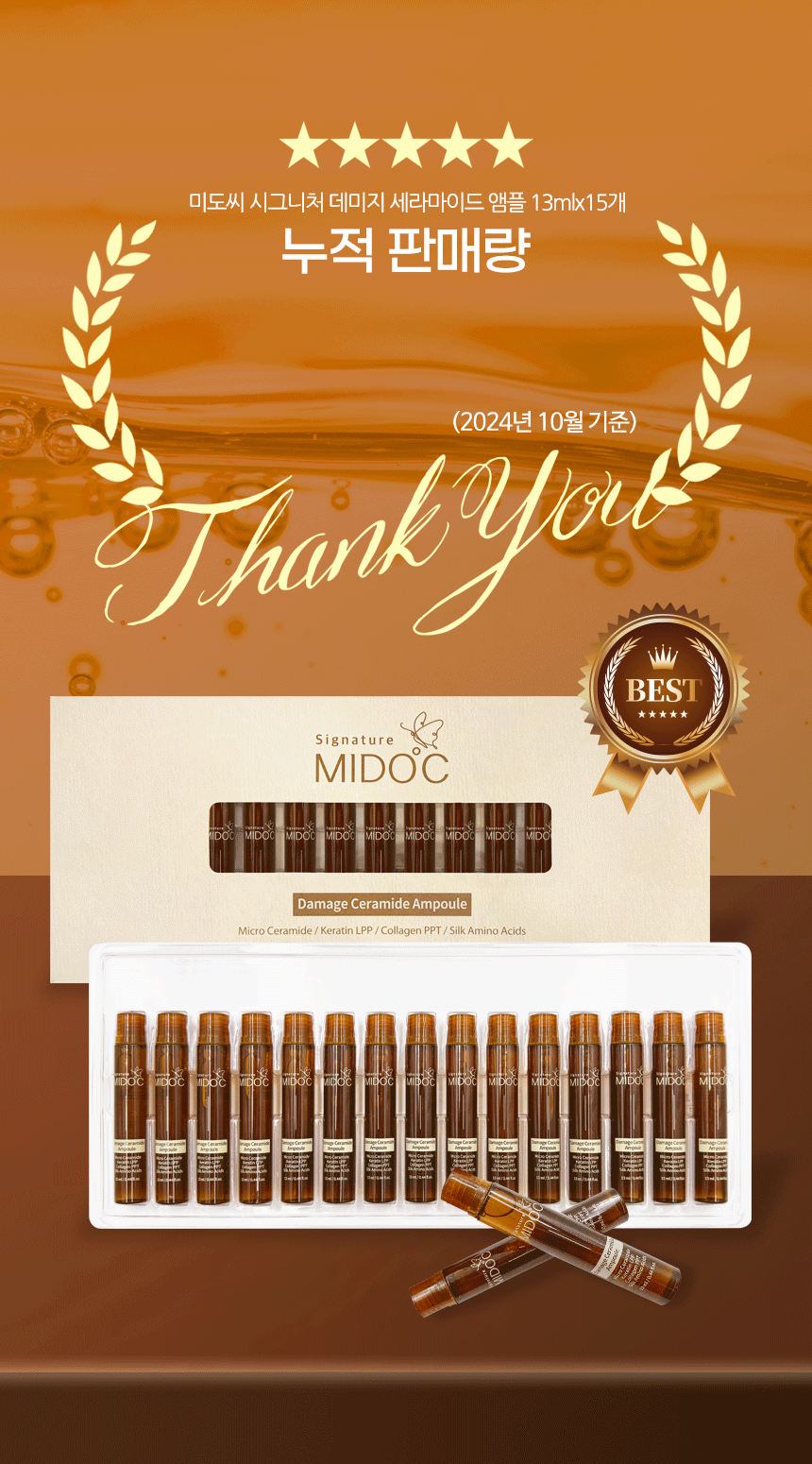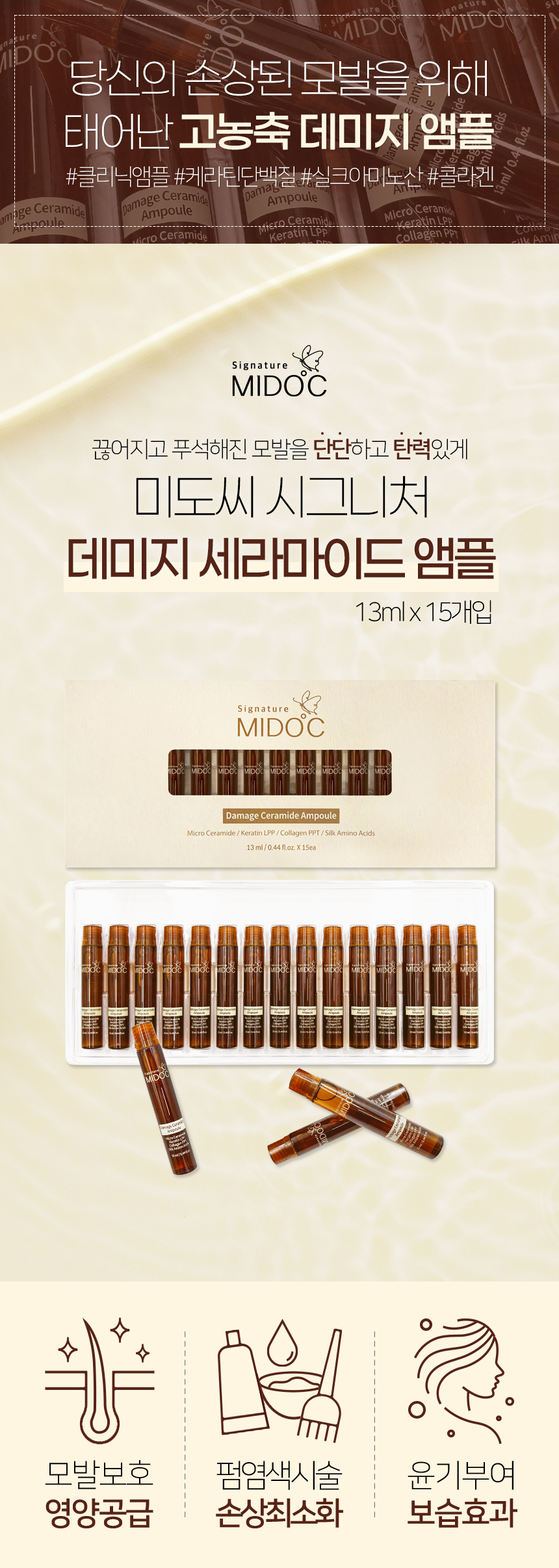 [3411] [미도씨] 시그니처 데미지 세라마이드 앰플 13ml×15개 / 케라틴 단백질 실크 아미노산 콜라겐 PPT 고농축 클리닉 앰플